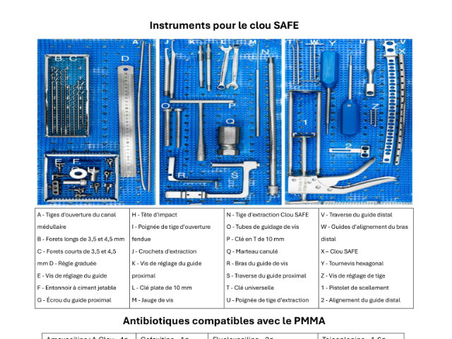 - Chiodo SICURO: Può essere utilizzato per tibia, femore e omero come prima indicazione nei casi di fratture esposte, allungamento osseo su chiodo, per sostituire un fissatore esterno, nel trattamento delle infezioni osteoarticolari. Può essere utilizzato anche per l’artrodesi del ginocchio o della caviglia.